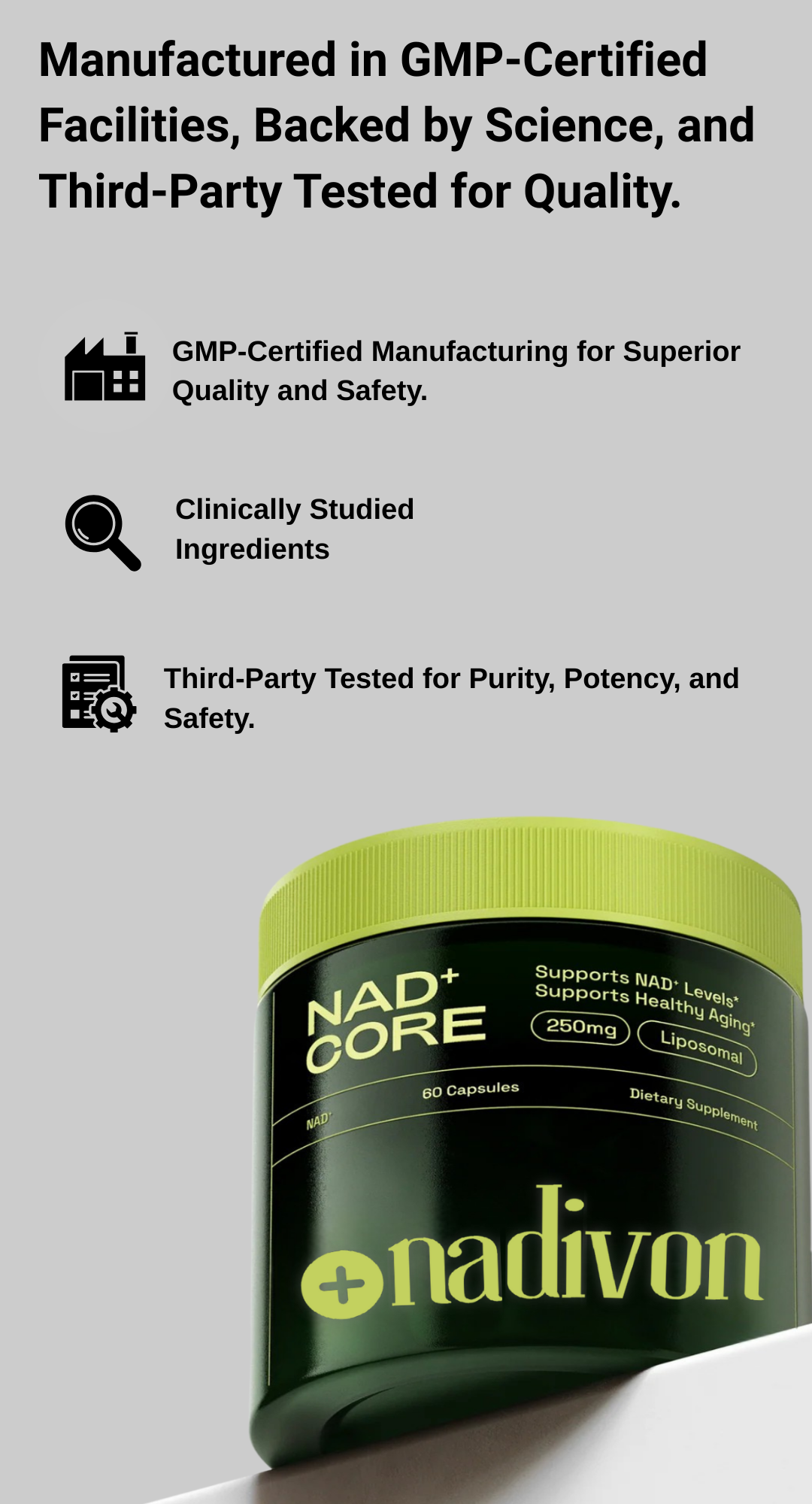 "I’ve been taking this NAD+ supplement for a month, and I can already see improvements in my energy, mood, and even skin. I’ve struggled with fatigue for years, and this supplement has truly helped me feel more like myself again. I’ll definitely continue using it!"