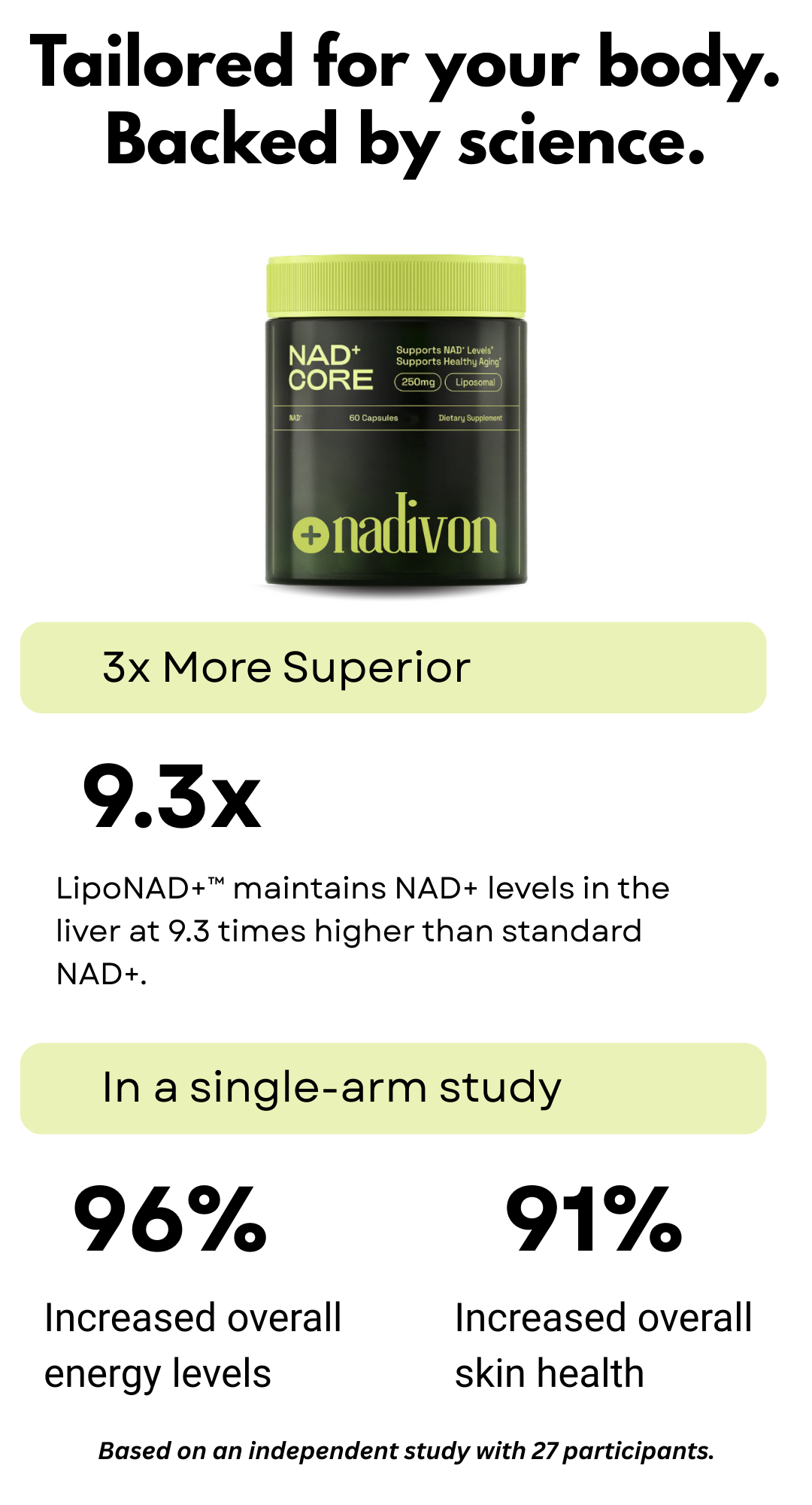 Your body has approximately 37.2 trillion cells, all fueled by NAD+, a crucial coenzyme. Over time, NAD+ levels decline due to aging, lifestyle factors, and stress. Replenishing NAD+ is key to sustaining cellular health, energy, and vitality.